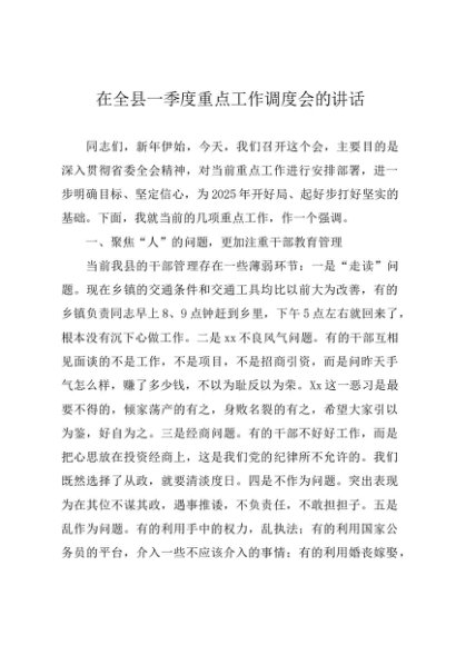 / 领导讲话:20250318在全县一季度重点工作调度会的讲话