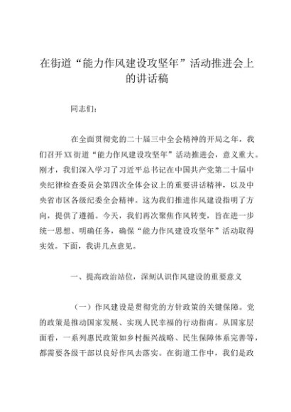 / 领导讲话:20250318在街道“能力作风建设攻坚年”活动推进会上的讲话稿