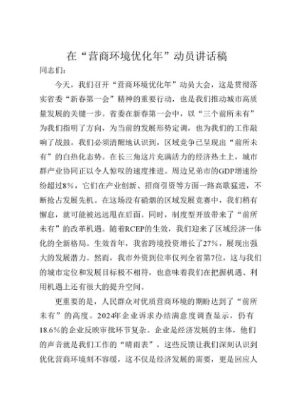 / 领导讲话:20250318在“营商环境优化年”动员讲话稿