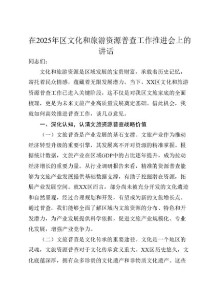/ 领导讲话:20250318在2025年区文化和旅游资源普查工作推进会上的讲话