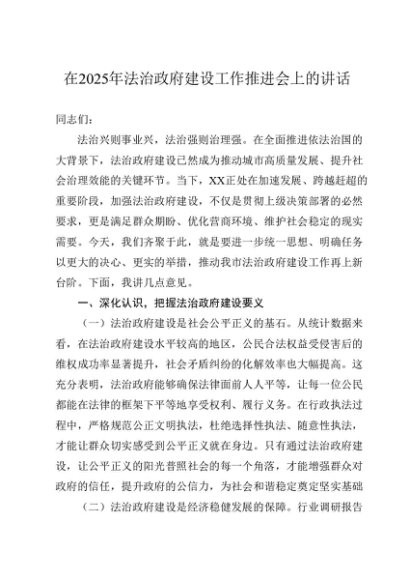 / 领导讲话:20250318在2025年法治政府建设工作推进会上的讲话