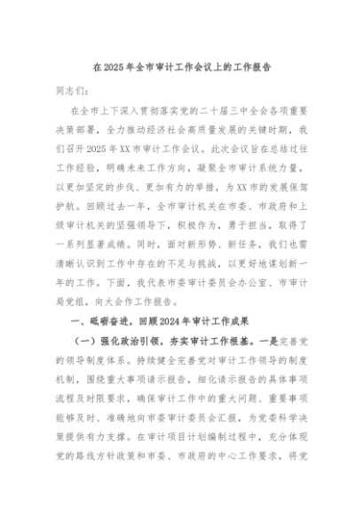 / 领导讲话:20250313在2025年全市审计工作会议上的工作报告