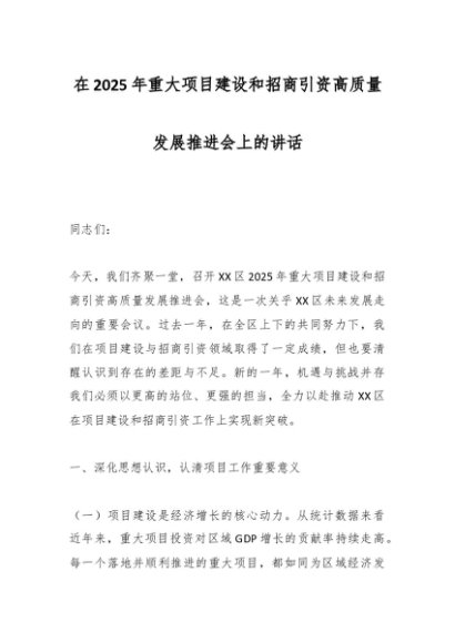 / 领导讲话:20250313在2025年重大项目建设和招商引资高质量发展推进会上的讲话