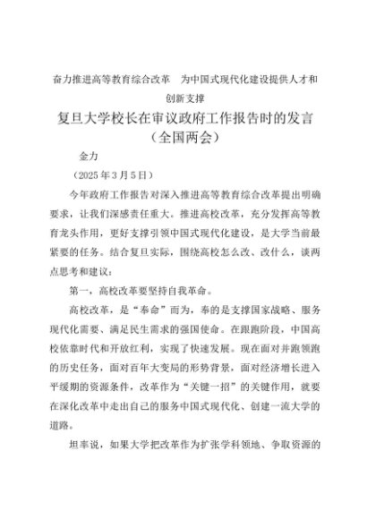 / 领导讲话:20250305复旦大学校长在审议政府工作报告时的发言(全国两会)