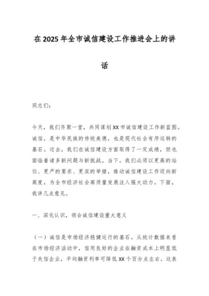 / 领导讲话:20250313在2025年全市诚信建设工作推进会上的讲话