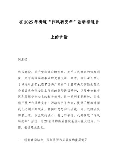 / 领导讲话:20250313在2025年街道“作风转变年”活动推进会上的讲话
