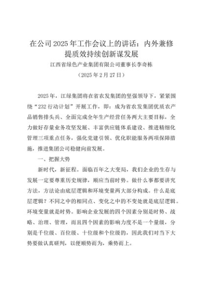 领导讲话:20250227在公司2025年工作会议上的讲话:内外兼修提质效持续创新谋发展——江西省绿色产业集团有限公司董事长李奇栋