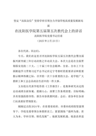 / 领导讲话:20250223在沈阳医学院第五届第五次教代会上的讲话——沈阳医学院党委书记任甫