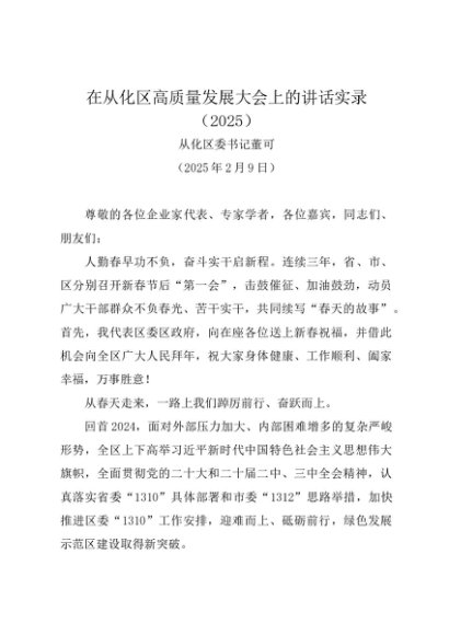 / 领导讲话:20250209在从化区高质量发展大会上的讲话实录——从化区委书记董可