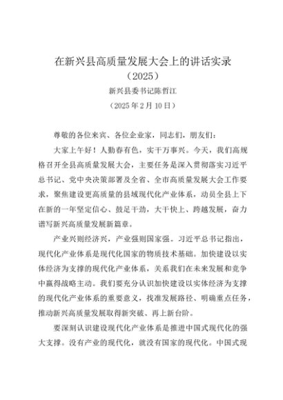 / 领导讲话:20250210在新兴县高质量发展大会上的讲话实录——新兴县委书记陈哲江