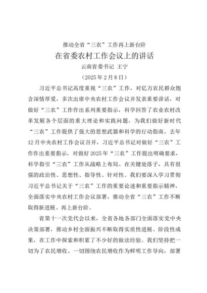 / 领导讲话:20250208在省委农村工作会议上的讲话——云南省委书记 王宁