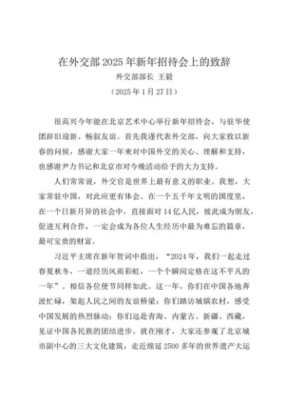 / 领导讲话:20250127在外交部2025年新年招待会上的致辞——外交部部长 王毅