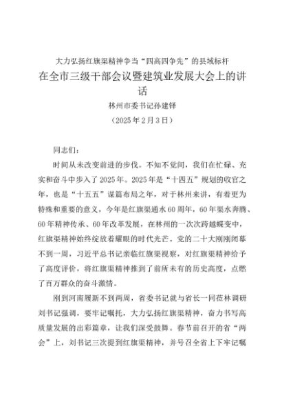 / 领导讲话:20250203在全市三级干部会议暨建筑业发展大会上的讲话——林州市委书记孙建铎