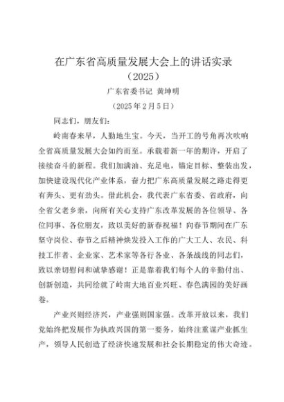 / 领导讲话:20250205在广东省高质量发展大会上的讲话实录——广东省委书记 黄坤明 - 副本