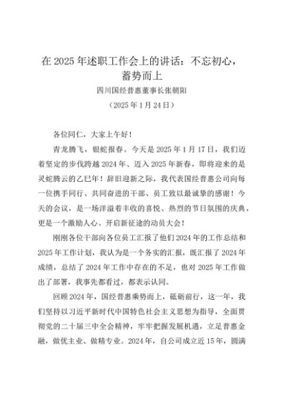 / 领导讲话:20250124在2025年述职工作会上的讲话——四川国经普惠董事长张朝阳