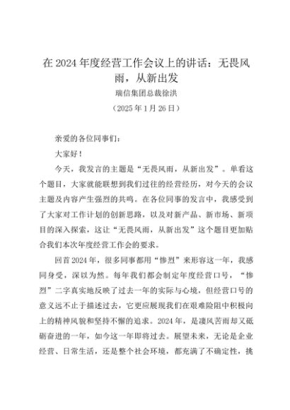 / 领导讲话:20250126在2024年度经营工作会议上的讲话——瑞信集团总裁徐洪