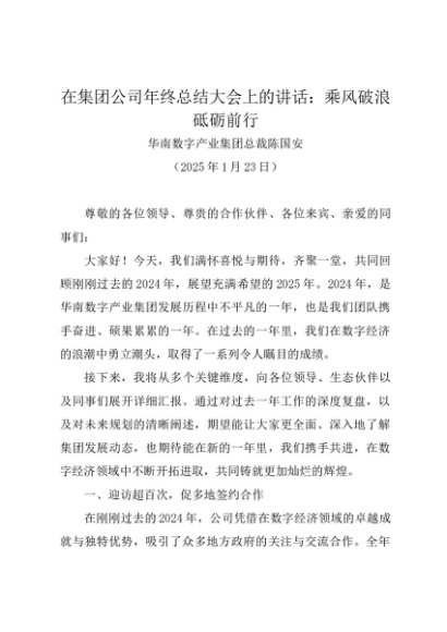 / 领导讲话:20250123在集团公司年终总结大会上的讲话——华南数字产业集团总裁陈国安