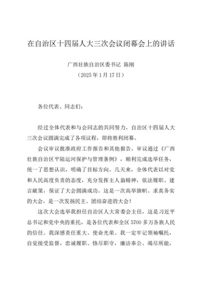 / 领导讲话:20250117在自治区十四届人大三次会议闭幕会上的讲话——广西壮族自治区委书记 陈刚