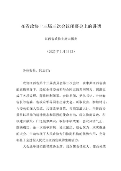 / 领导讲话:20250119在省政协十三届三次会议闭幕会上的讲话——江西省政协主席宋福龙