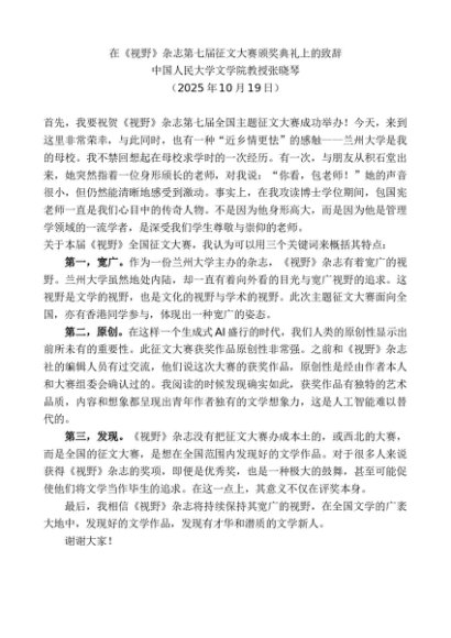 / 领导讲话:20251030中国人民大学文学院教授张晓琴:在《视野》杂志第七届征文大赛颁奖典礼上的致辞