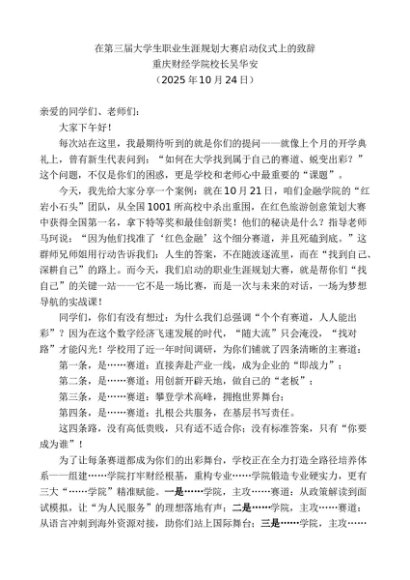 / 领导讲话:20251030重庆财经学院校长吴华安:在第三届大学生职业生涯规划大赛启动仪式上的致辞