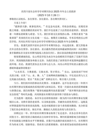 / 领导讲话:20251030在四川省社会科学学术期刊协会2025年年会上的致辞