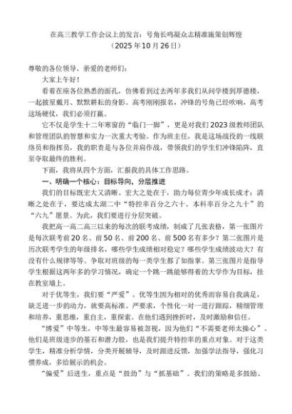 / 领导讲话:20251030在高三教学工作会议上的发言:号角长鸣凝众志精准施策创辉煌
