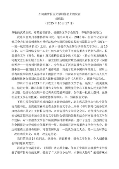 / 领导讲话:20251030尚伟民:在河南省报告文学创作会上的发言