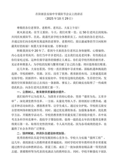 / 领导讲话:20251030在阳新县实验中学重阳节会议上的讲话