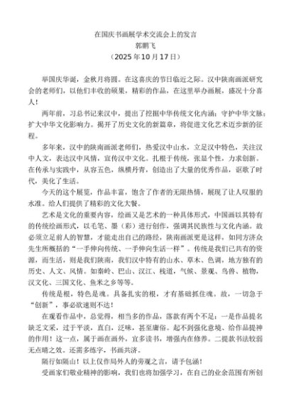 / 领导讲话:20251030郭鹏飞:在国庆书画展学术交流会上的发言