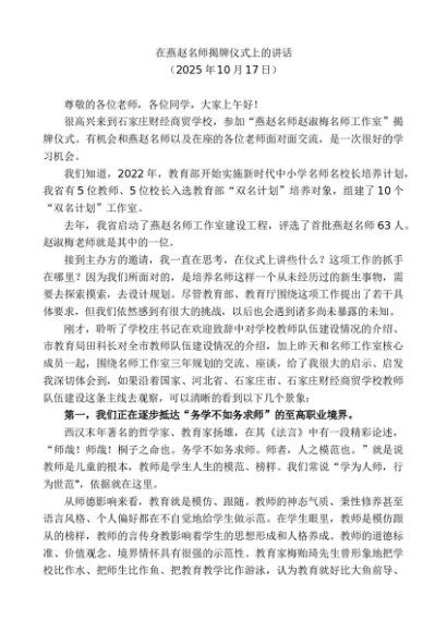 / 领导讲话:20251030在燕赵名师揭牌仪式上的讲话