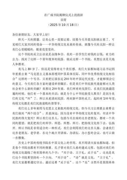 / 领导讲话:20251030田青:在广成书院揭牌仪式上的致辞