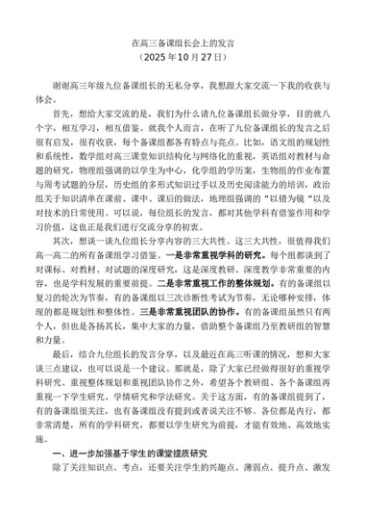 / 领导讲话:20251030在高三备课组长会上的发言