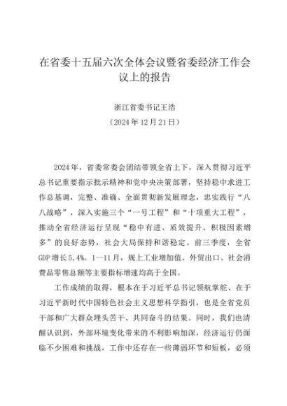 / 领导讲话:20241221在省委十五届六次全体会议暨省委经济工作会议上的报告——浙江省委书记王浩
