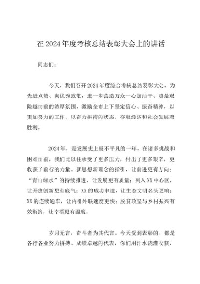 / 领导讲话:20241126在2024年度考核总结表彰大会上的讲话