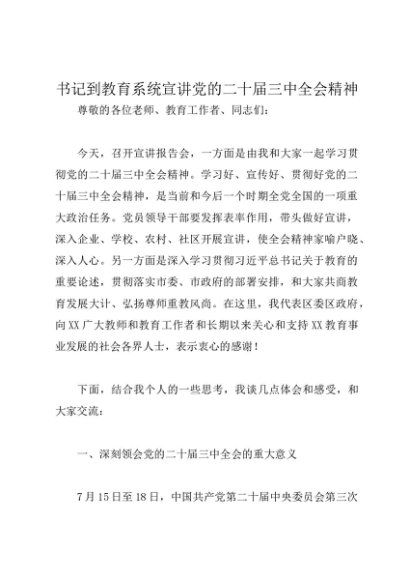 领导讲话:20241127书记到教育系统宣讲党的二十届三中全会精神