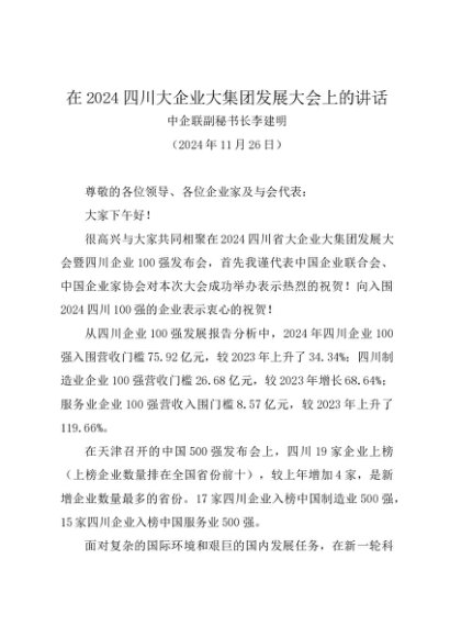 / 领导讲话:20241126在2024四川大企业大集团发展大会上的讲话——中企联副秘书长李建明