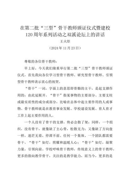 / 领导讲话:20241123在第二批“三型”骨干教师颁证仪式暨建校120周年系列活动之双溪论坛上的讲话