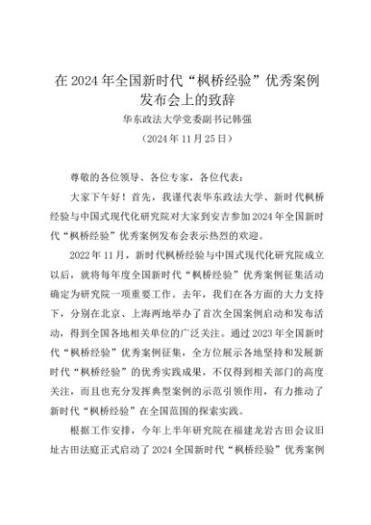/ 领导讲话:20241125在2024年全国新时代“枫桥经验”优秀案例发布会上的致辞——华东政法大学党委副书记韩强