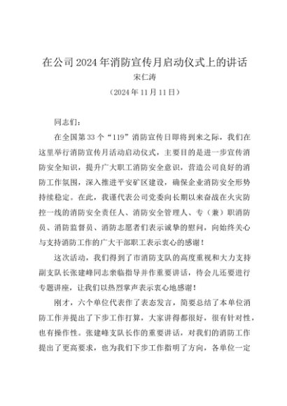 / 领导讲话:20241111在公司2024年消防宣传月启动仪式上的讲话