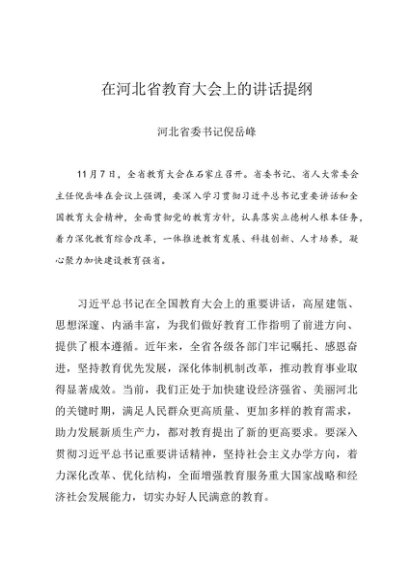 / 领导讲话:20241107在河北省教育大会上的讲话提纲——河北省委书记倪岳峰