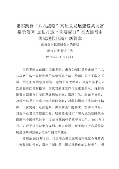 / 领导讲话:20241107在市委书记座谈会上的讲话——浙江省委书记王浩