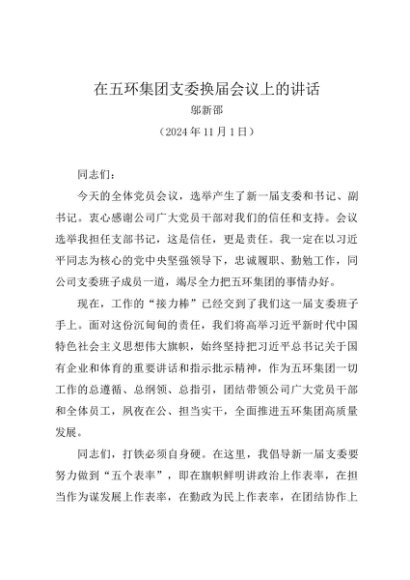 / 领导讲话:20241101在五环集团支委换届会议上的讲话