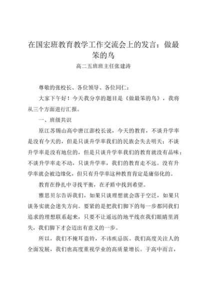 / 领导讲话:20241030在国宏班教育教学工作交流会上的发言:做最笨的鸟