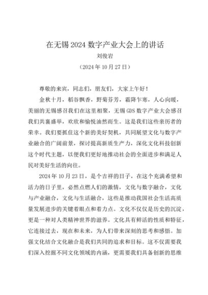 / 领导讲话:20241027在无锡2024数字产业大会上的讲话——刘俊岩