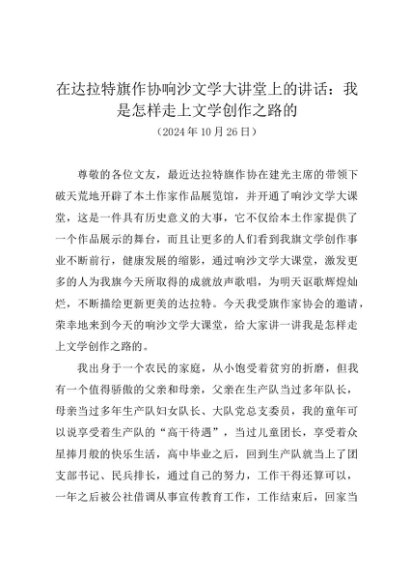 / 领导讲话:20241026在达拉特旗作协响沙文学大讲堂上的讲话:我是怎样走上文学创作之路的
