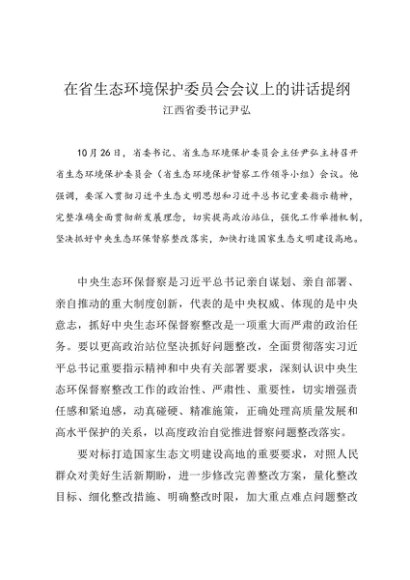 / 领导讲话:20241026在省生态环境保护委员会会议上的讲话提纲——江西省委书记尹弘