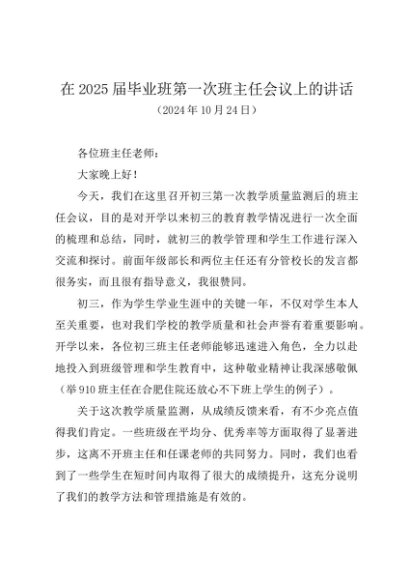 领导讲话:20241024在2025届毕业班第一次班主任会议上的讲话