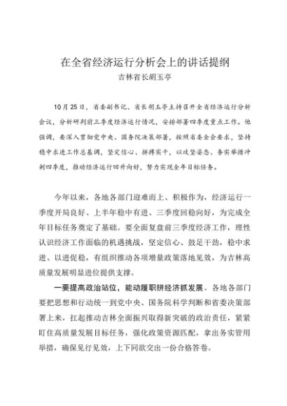 / 领导讲话:20241025在全省经济运行分析会上的讲话提纲——吉林省长胡玉亭