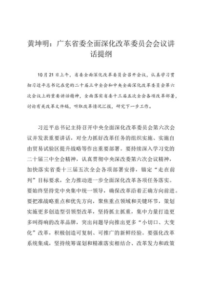/ 领导讲话:20241021黄坤明:广东省委全面深化改革委员会会议讲话提纲